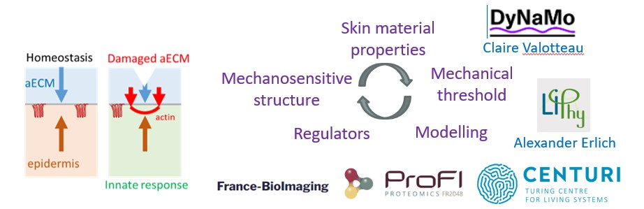 - Define the biophysical properties of the skin and formulate a predictive model, in collaboration with Claire Valotteau DyNaMo, Centuri Marseille & Alexander Erlich, LIPhy Grenoble,