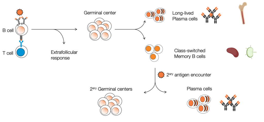 Our lab investigates how the immune system establishes long-lasting protection after infection, with a focus on B cell memory. During an immune response, B cells undergo activation and selection processes that lead to the generation of two key memory populations: