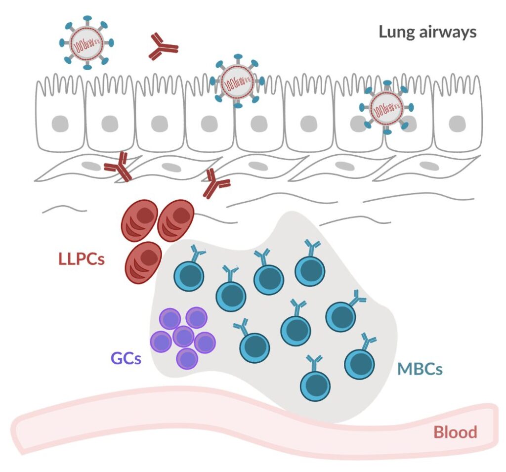 Traditionally, B cell memory has been studied in secondary lymphoid organs. However, recent work from our group and others has shown that LLPCs and MBCs can also take up residence in barrier tissues, such as the lungs, following mucosal infections like influenza and SARS-CoV-2. These populations appear to originate directly from germinal center reactions occurring in tertiary lymphoid structures within the tissue itself. Interestingly, the mechanisms governing germinal center selection and memory formation in barrier tissues seem to differ from those in classical lymphoid organs.