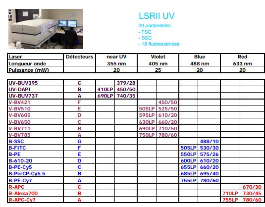 Cytomètre conventionnel 4 lasers, 18 couleurs